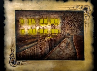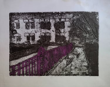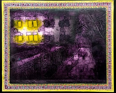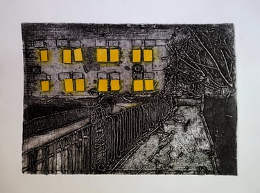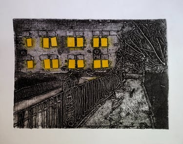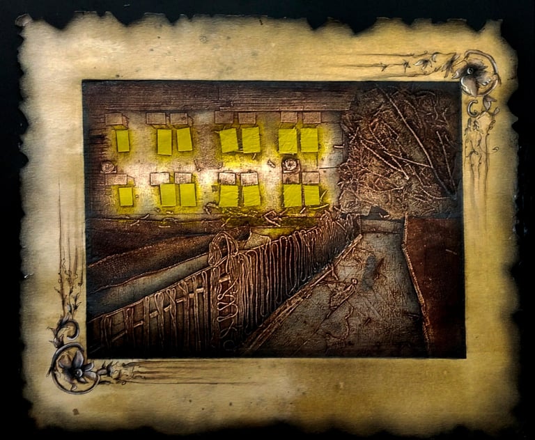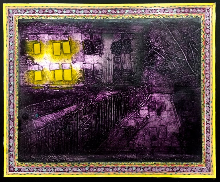 This series, created using the collagraph printmaking technique, explores how a place’s atmosphere transforms at different times of the day and week. By observing these shifts, the work reflects on the evolving energies, emotions, and auras that emerge, highlighting how changing contexts and moments shape our perception of familiar environments.