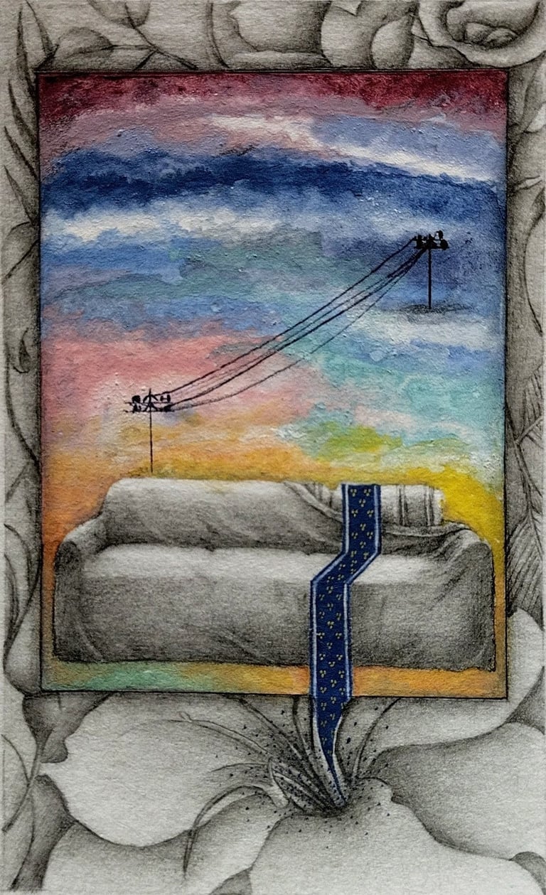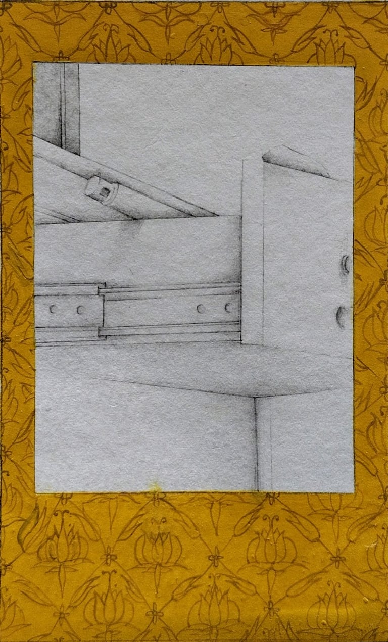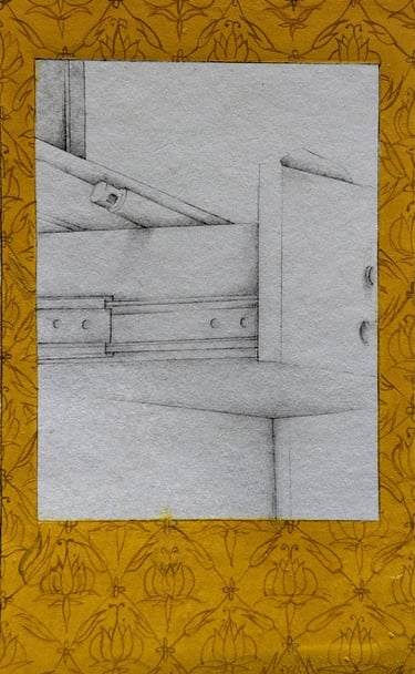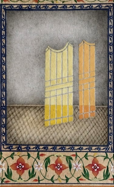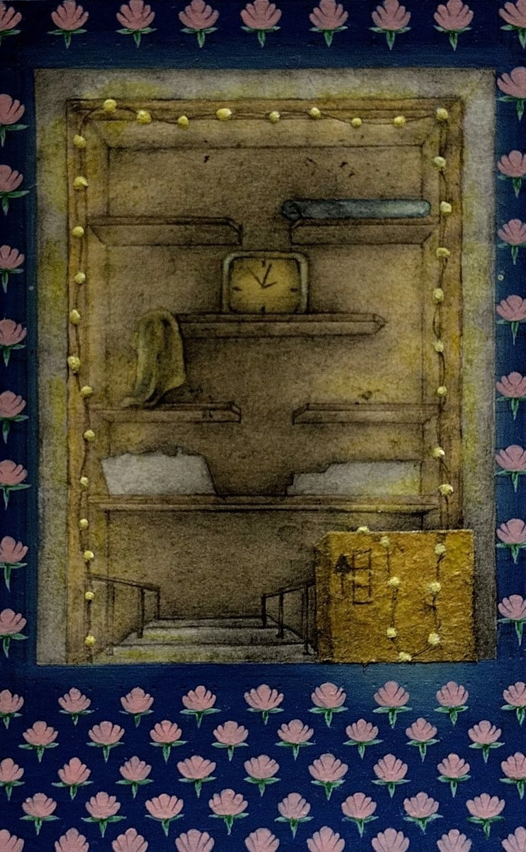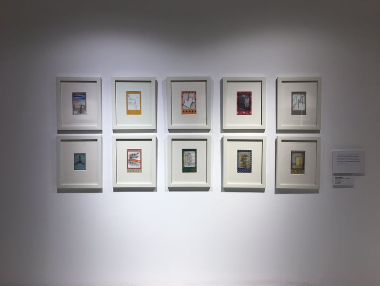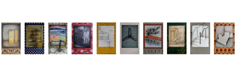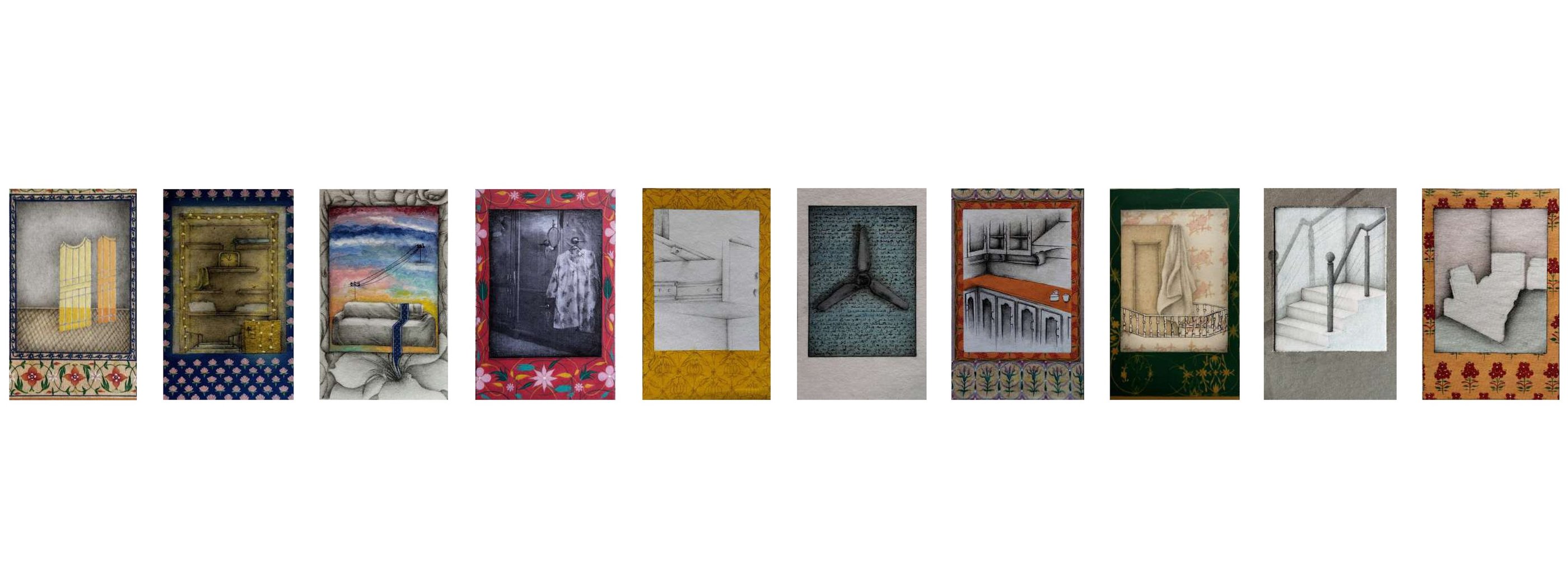 Gallery | 2021 | gouache, watercolour, ink, collage, graphite, photo transfer and tea stain on wasli | 3.4 x 2.1 inches, each